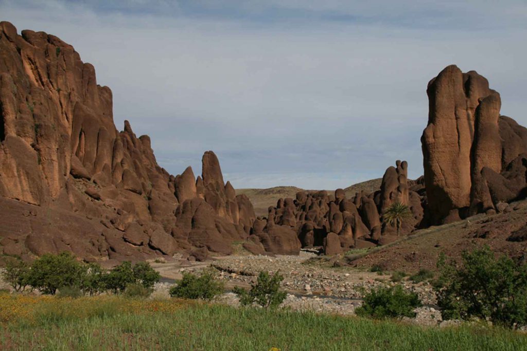 We drive to Tifrit (by minibus or 4×4). We pass the Draa Valley and stop at Ouarzazate until we arrive at Tifrit (called ‘Paradise Valley’), we have dinner in our gite (rural Moroccan home) and pass the night.